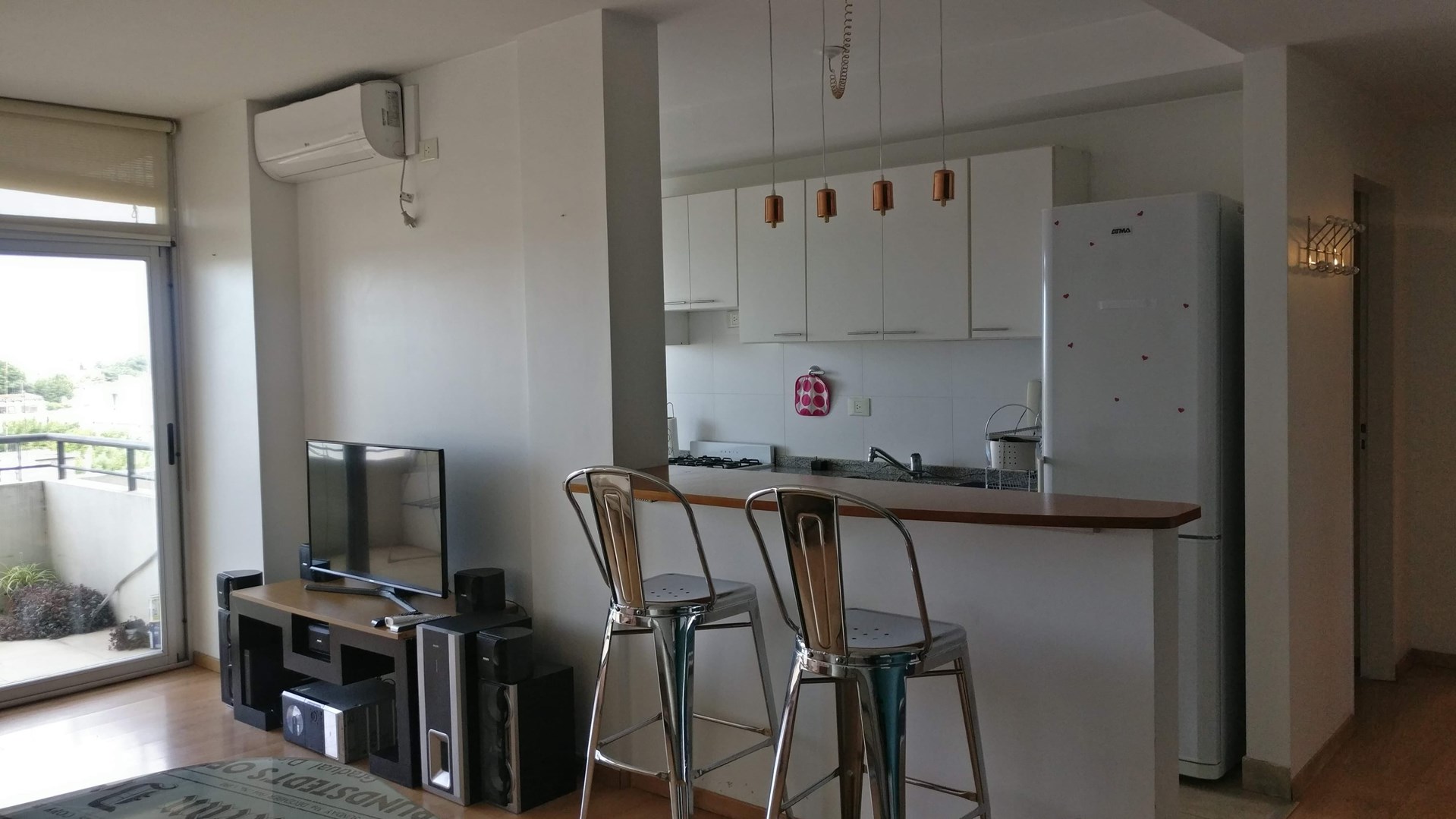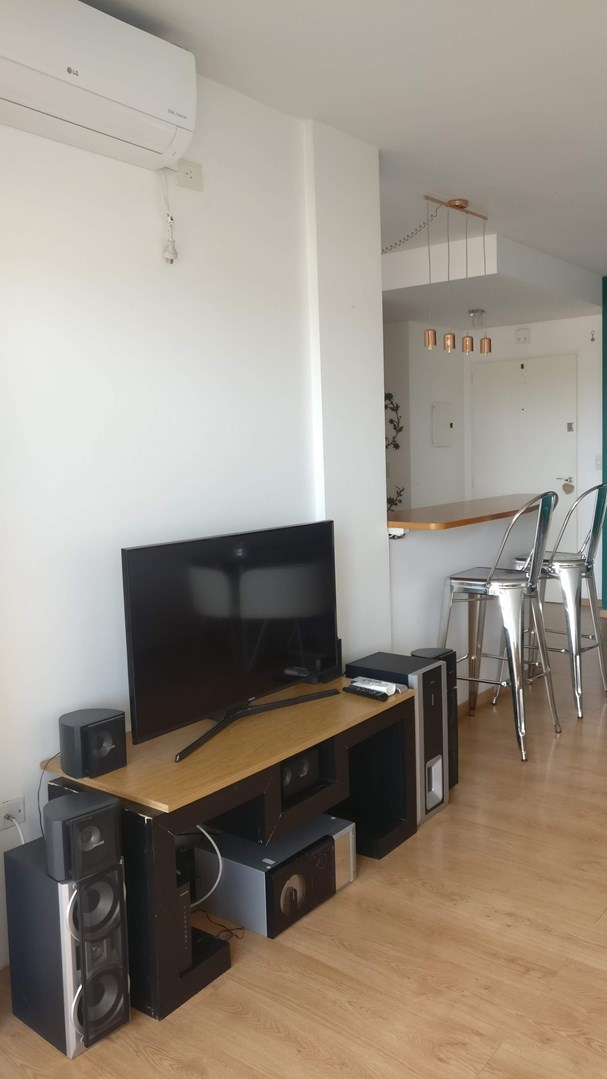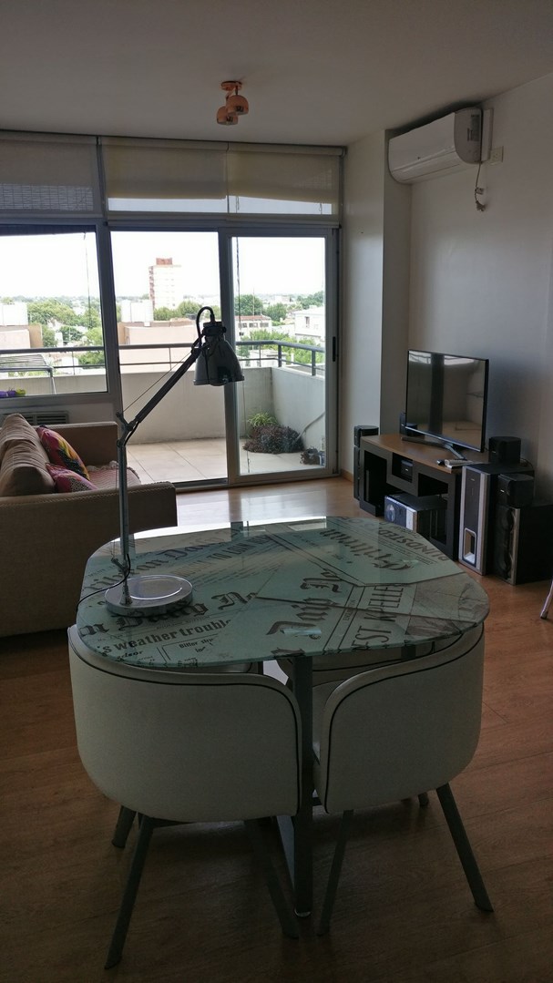 Departamento de dos ambientes en alquiler amueblado. Moderno edificio con pileta, parrilla y laundry en la terraza como amenities. Living comedor con salida a amplio balcón. Baño completo. Cocina completa con pasaplatos y con espacio para lavarropas. Dormitorio con placard. Se alquila con los muebles y electrodomésticos que aparecen en las fotos (heladera, lavarropas, TV, audio). Dos aire acondicionado Frio/Calor uno en el living y el otro en el dormitorio. Baulera en subsuelo incluida en el alquiler. Expensas ordinarias Pesos 130.000 Incluye AySA Edificio con piscina en azotea. Contrato por dos años con ajustes cuatrimestrales por IPC.