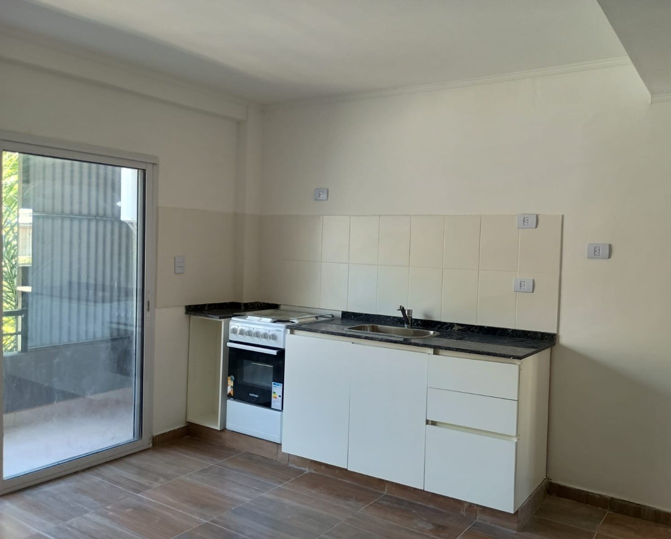 Gran living comedor, con salida a balcón al frente y con cocina integrada.
